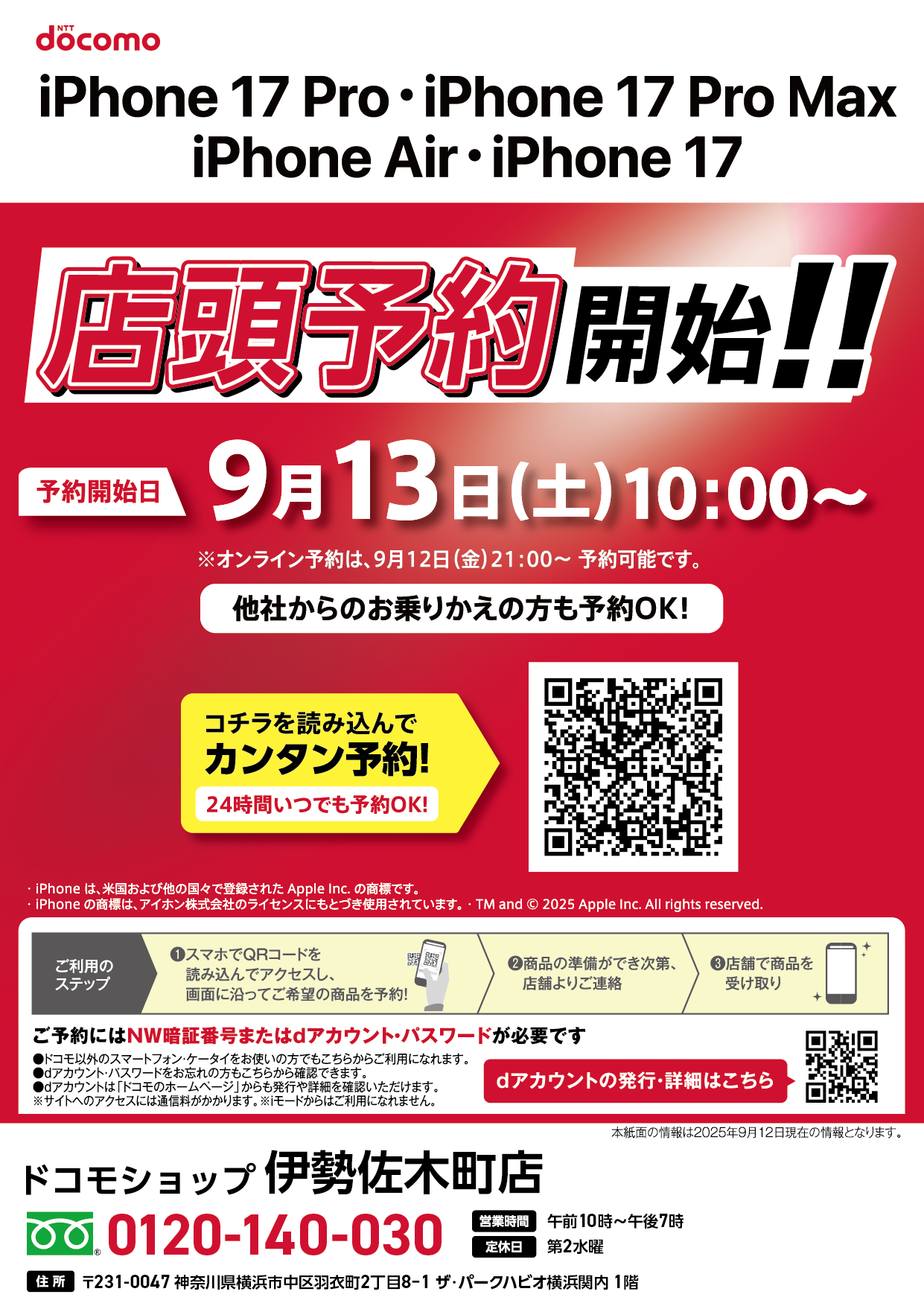 WEBからの来店予約には「dアカウント」が必要になります。 dアカウントが不明な方はお電話でご予約下さい!